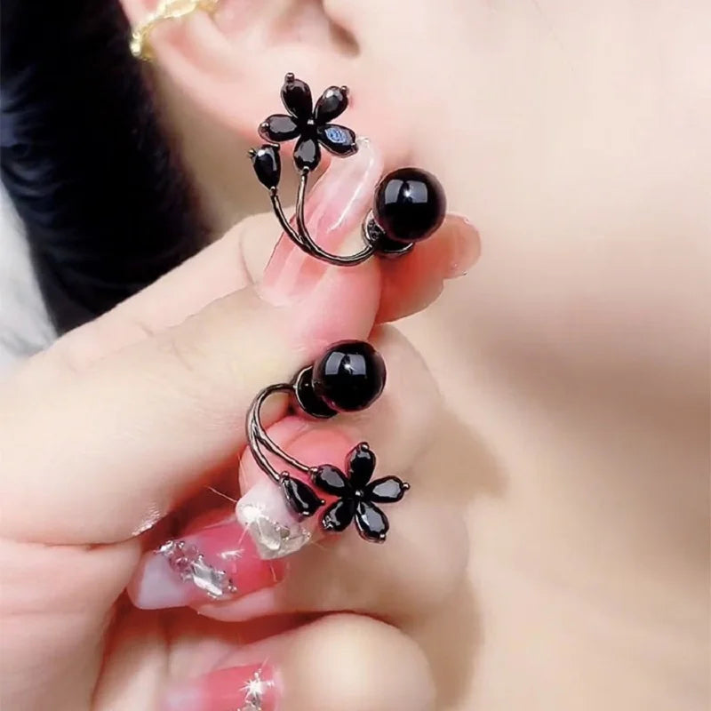 The Black Flower Two-Wear Earrings blend timeless charm with modern versatility.